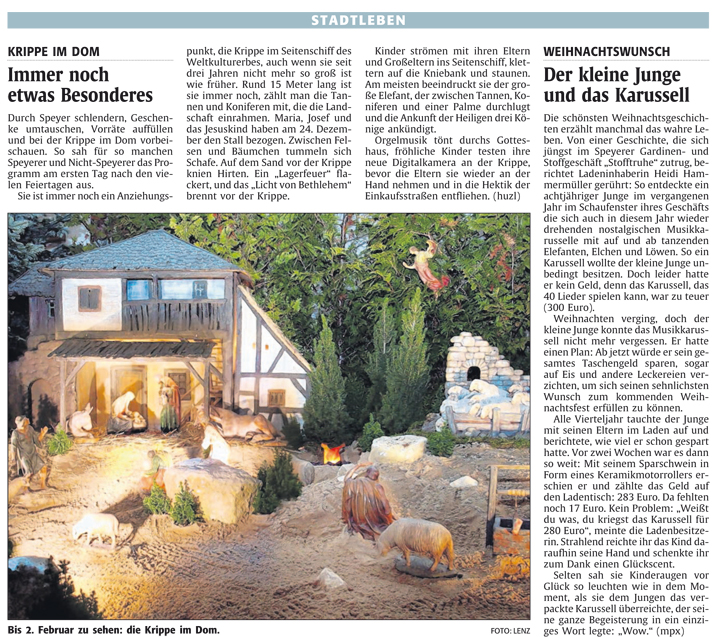 Presseartikel "Krippe im Dom" aus der Rheinpfalz, 31.12.2009